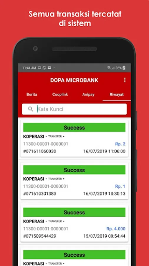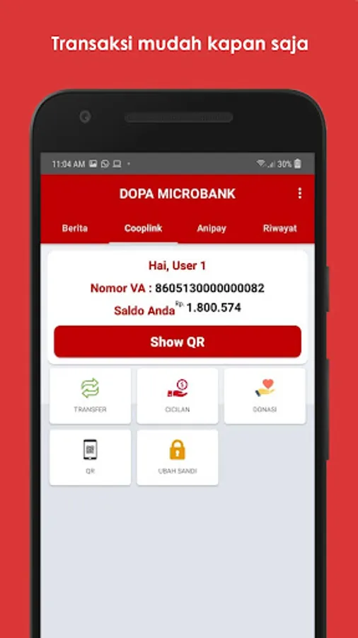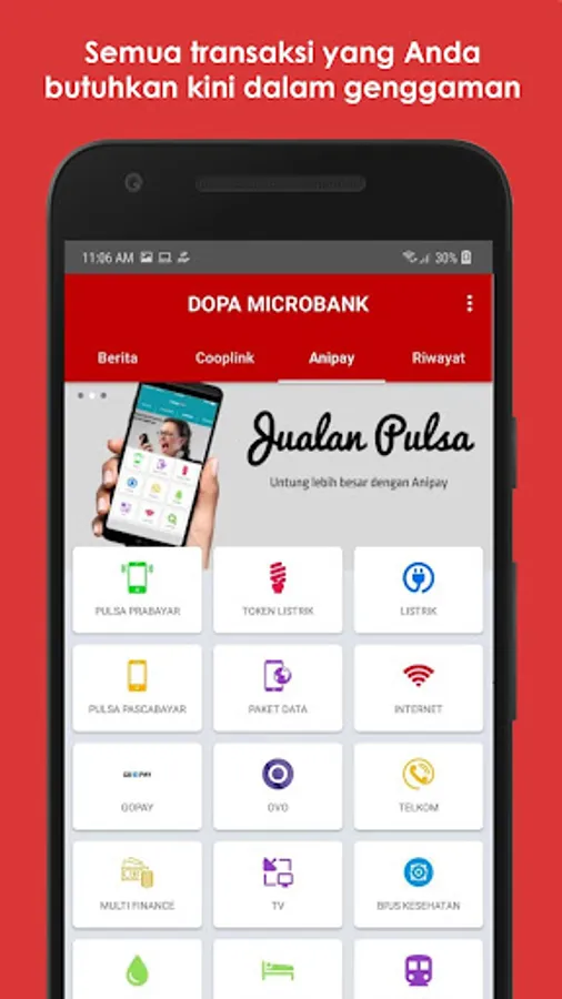 DOPA MICROBANK mempersembahkan kemudahan berbagai transaksi finansial untuk semua Anggota. Aplikasi Cooplink DOPA MICROBANK ini dapat digunakan secara online setiap waktu anda ingin melakukan transaksi finansial tanpa perlu ke kantor layanan. Kenyamanan bertransaksi finansial kini ada dalam genggaman anda (Tidak perlu membawa uang tunai).
