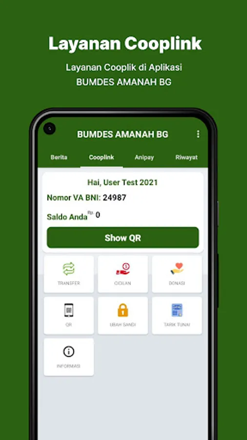 Bumdes Amanah BG Mobile mempersembahkan kemudahan berbagai transaksi finansial untuk semua Anggota. Aplikasi Cooplink Bumdes Amanah BG Mobile ini dapat digunakan secara online setiap waktu anda ingin melakukan transaksi finansial tanpa perlu ke kantor layanan. Kenyamanan bertransaksi finansial kini ada dalam genggaman anda (Tidak perlu membawa uang tunai).