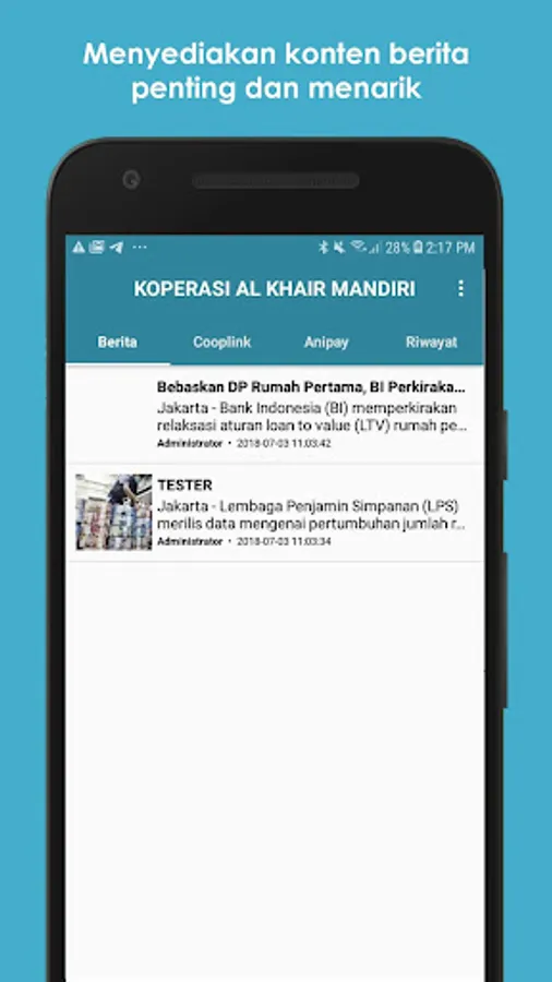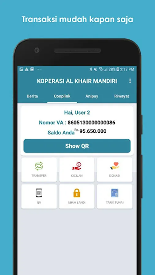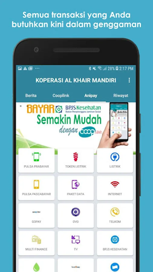 KOPERASI AL KHAIR MANDIRI mempersembahkan kemudahan berbagai transaksi finansial untuk semua Anggota. Aplikasi Cooplink KOPERASI AL KHAIR MANDIRI ini dapat digunakan secara online setiap waktu anda ingin melakukan transaksi finansial tanpa perlu ke kantor layanan. Kenyamanan bertransaksi finansial kini ada dalam genggaman anda (Tidak perlu membawa uang tunai).