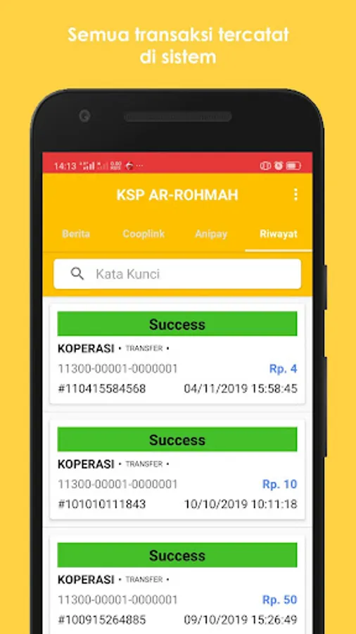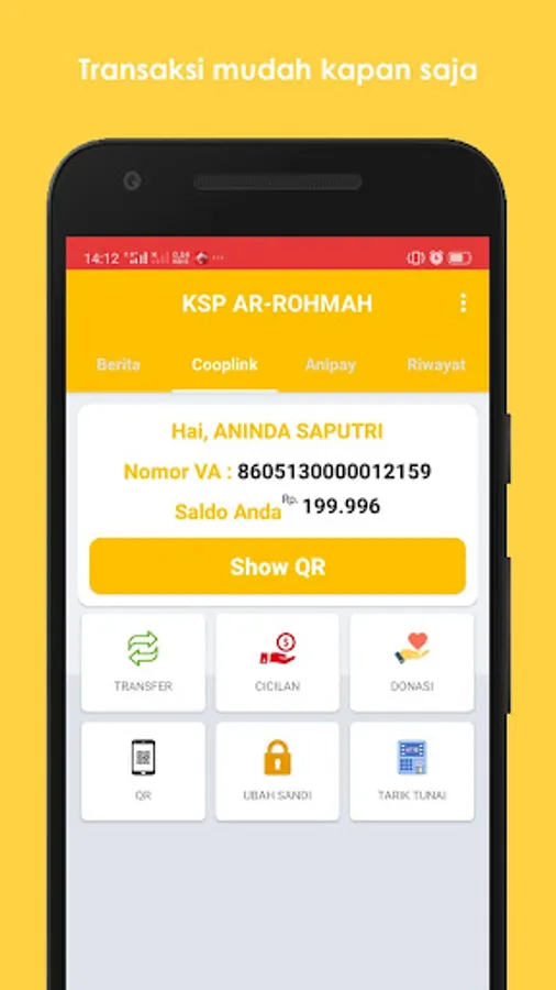 KSP AR-ROHMAH mempersembahkan kemudahan berbagai transaksi finansial untuk semua Anggota. Aplikasi Cooplink KSP AR-ROHMAH ini dapat digunakan secara online setiap waktu anda ingin melakukan transaksi finansial tanpa perlu ke kantor layanan. Kenyamanan bertransaksi finansial kini ada dalam genggaman anda (Tidak perlu membawa uang tunai).
