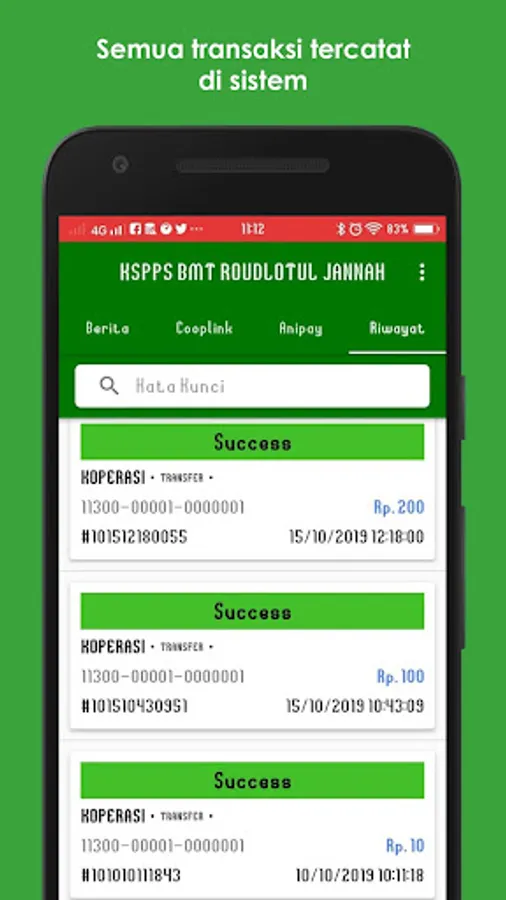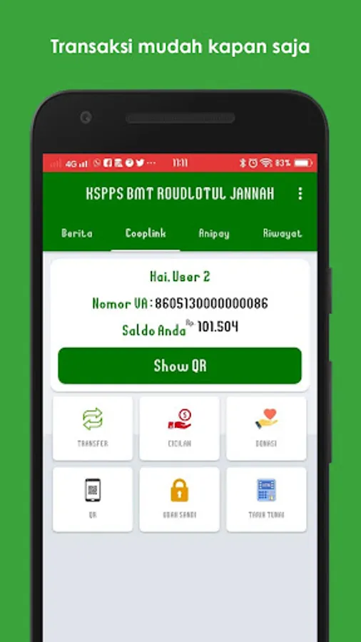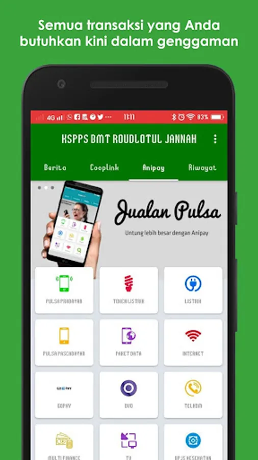 KSPPS BMT ROUDLOTUL JANNAH mempersembahkan kemudahan berbagai transaksi finansial untuk semua Anggota. Aplikasi Cooplink KSPPS BMT ROUDLOTUL JANNAH ini dapat digunakan secara online setiap waktu anda ingin melakukan transaksi finansial tanpa perlu ke kantor layanan. Kenyamanan bertransaksi finansial kini ada dalam genggaman anda (Tidak perlu membawa uang tunai).