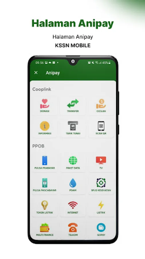 KSSN Mobile mempersembahkan kemudahan berbagai transaksi finansial untuk semua Anggota. Aplikasi Cooplink KSSN Mobile ini dapat digunakan secara online setiap waktu anda ingin melakukan transaksi finansial tanpa perlu ke kantor layanan. Kenyamanan bertransaksi finansial kini ada dalam genggaman anda (Tidak perlu membawa uang tunai).