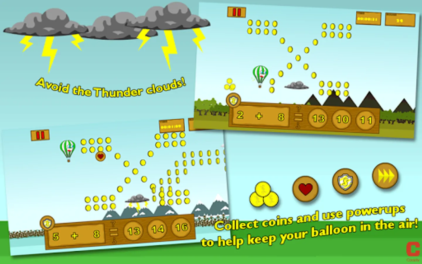 Soar through the skies in a balloon powered by knowledge! Choose from addition, subtraction, multiplication, division or all four and see how long you can keep your balloon afloat. Collect coins, avoid obstacles and conquer the skies all with the awesome power of maths!