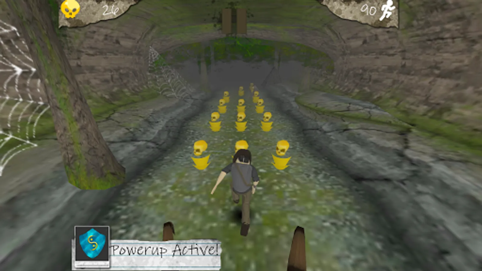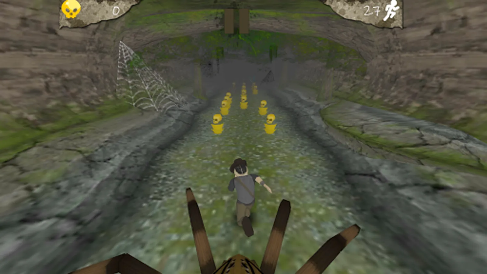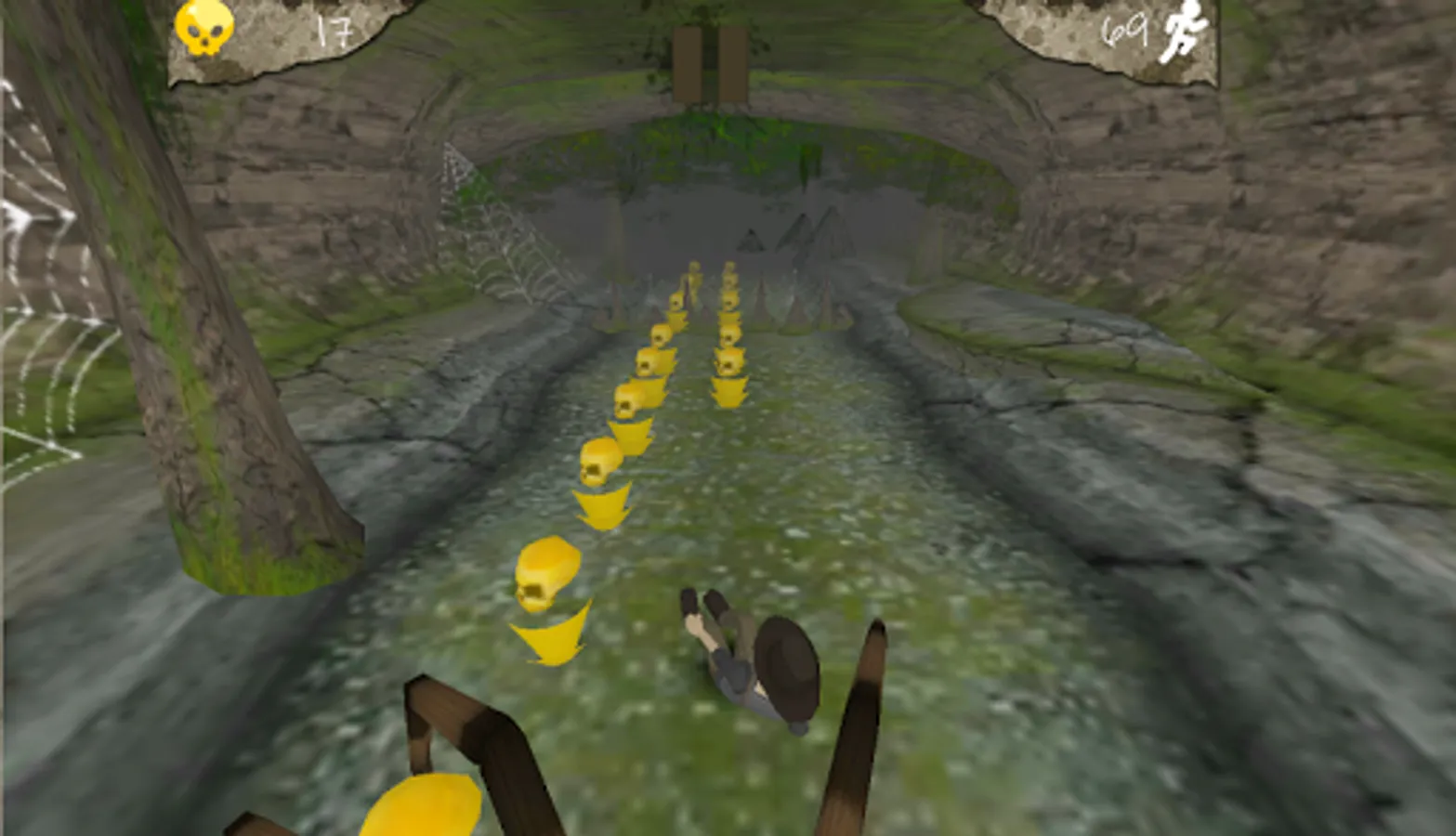 Cave of the Golden Skulls is a swipe controlled 3D infinite runner game where the player must dodge obstacles while running from a terrifying enemy. Swipe left or right to jump lanes, swipe up to jump, down to slide and tap to interact with buttons/activate powerups!
