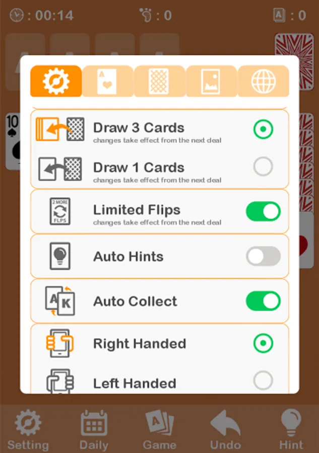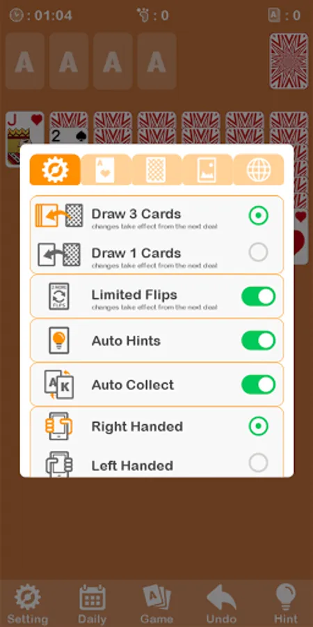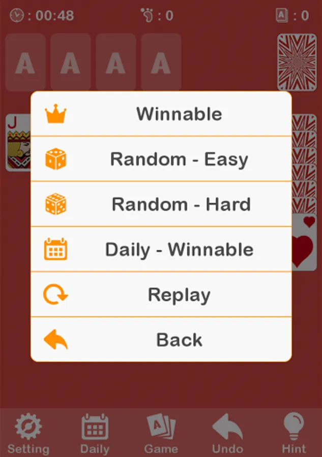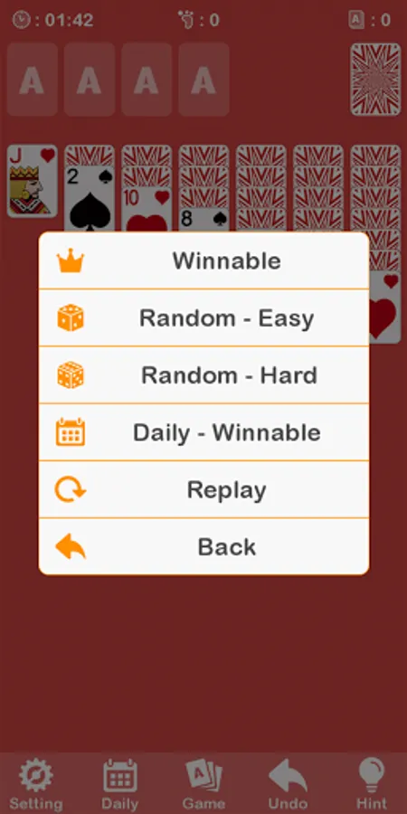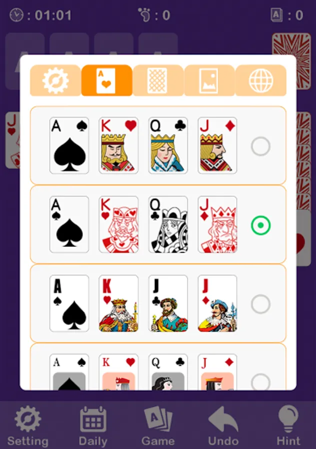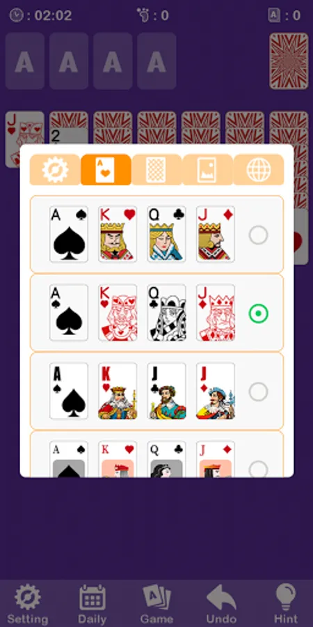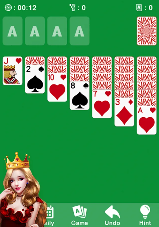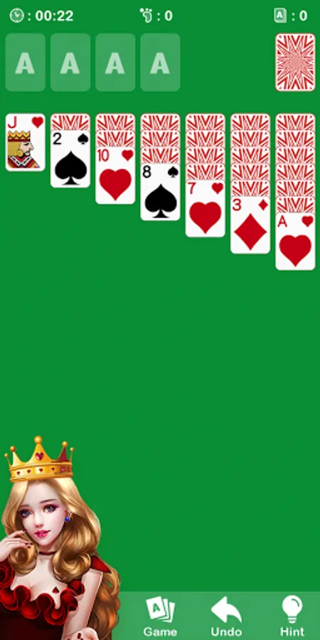 The cards are stacked in four different colors (red peaches, squares, plums, spades) from small to large (from A to K).