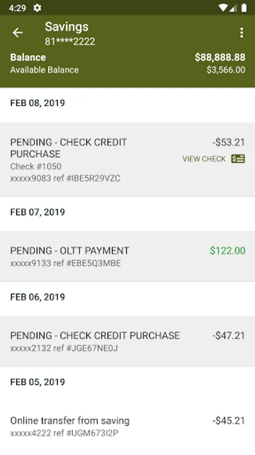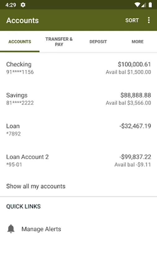 • Información de balances y detalles de sus cuentas