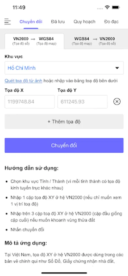 Application Converting VN2000 coordinates to Google Maps WGS84