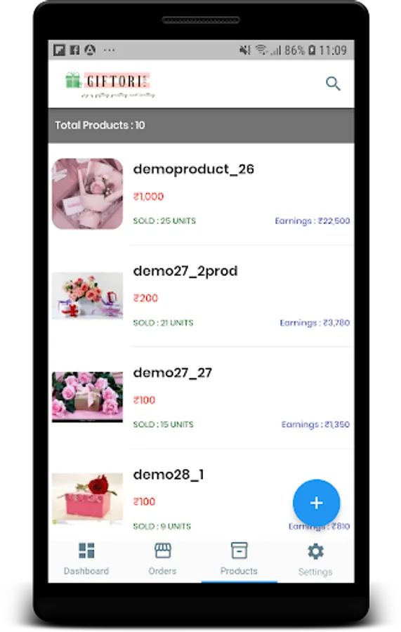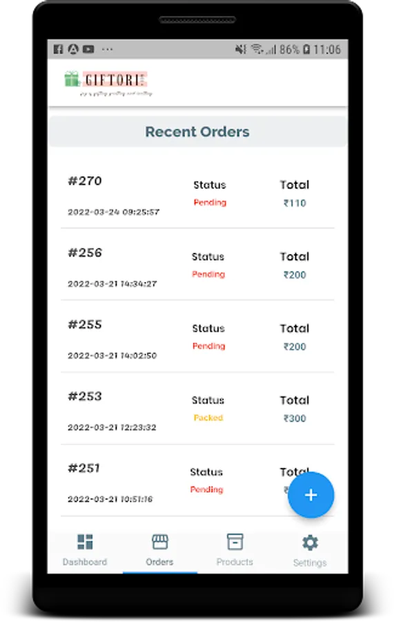 Application for the sellers of giftori.com to view and handle the orders placed and for adding, updating, managing their products on giftori.com.
