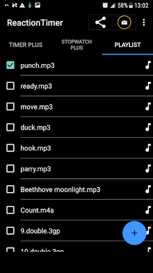 This is where you make a playlist by checking actions or sounds you want to play and click save at the top right corner of the screen, both Random reaction timer modes use the same playlist, you can also record your own actions directly from the app and upload your own sound as well.