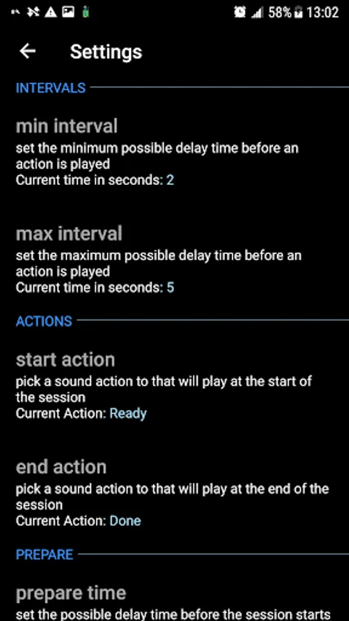 Prepare time this is the time delay before the session starts, giving you time to prepare.