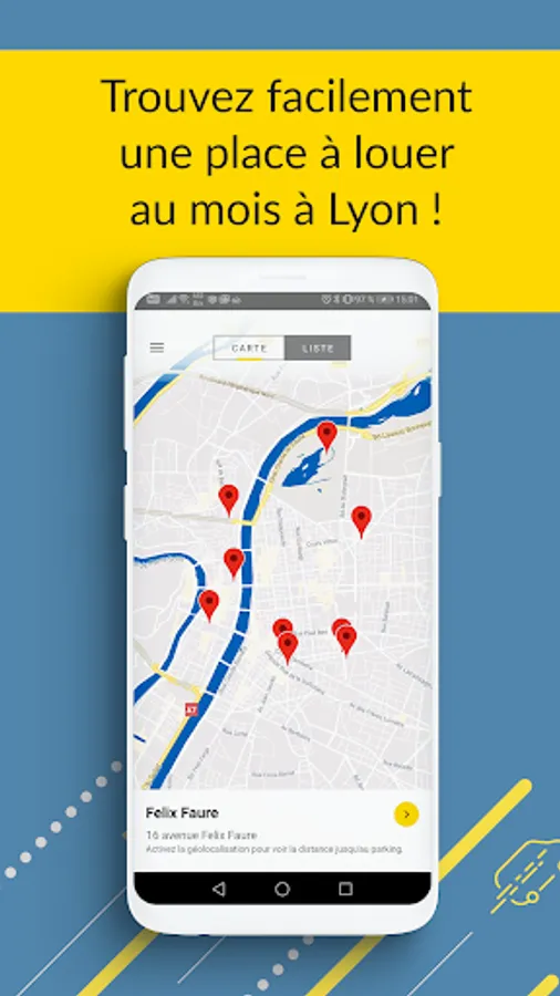 Thanks to the Copark application, find a parking space simply in Lyon. The map shows you in real time the places available. No need to turn for hours in search of the unexpected hail, have peace of mind!