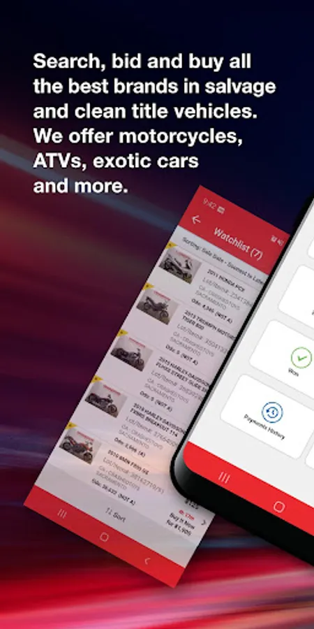 • Receive notifications about counterbid offers, auctions won, auctions lost and Watchlist vehicles up for auction