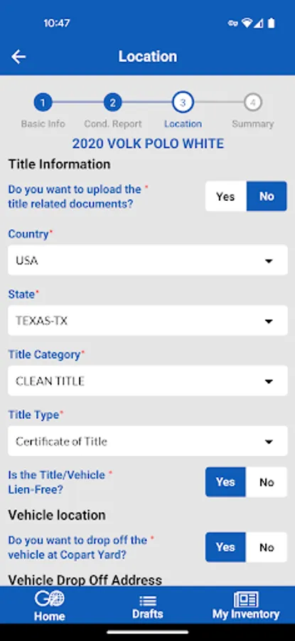 The Copart GO App makes it easy to list your vehicle. Simply take vehicle photos and scan VIN numbers to decode and populate a vehicle’s year, make, model and more—all within the app. Save drafts of assignments so you can complete them when it’s convenient for you.