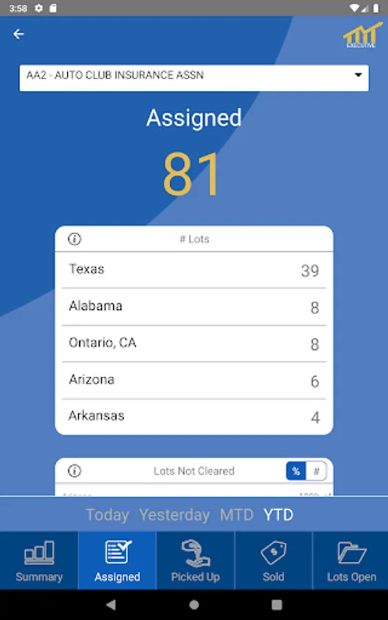 • Assigned lots report that provides you with state-wise number of lots assigned to Copart.