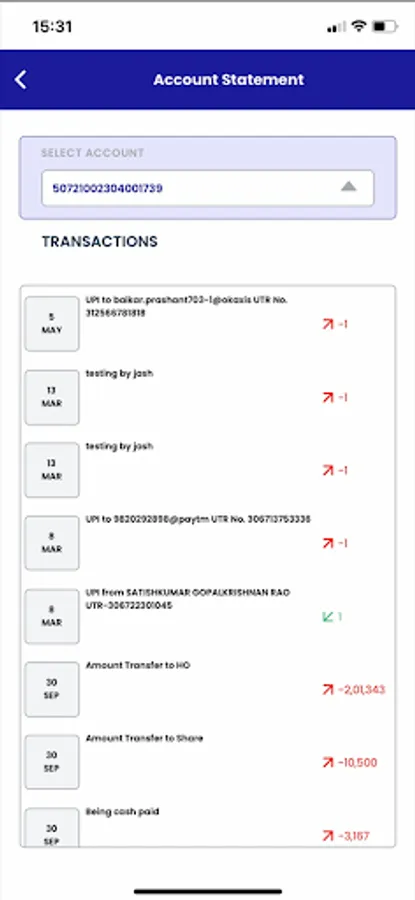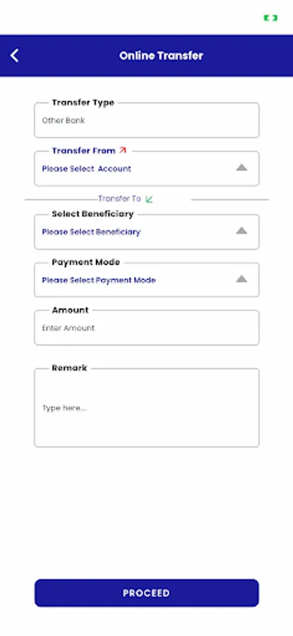 Simple navigation based on customer needs like Transfer, Beneficiary, and Account Statement.
