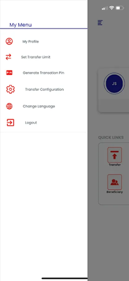 Simple navigation based on customer needs like Transfer, Beneficiary, and Account Statement.