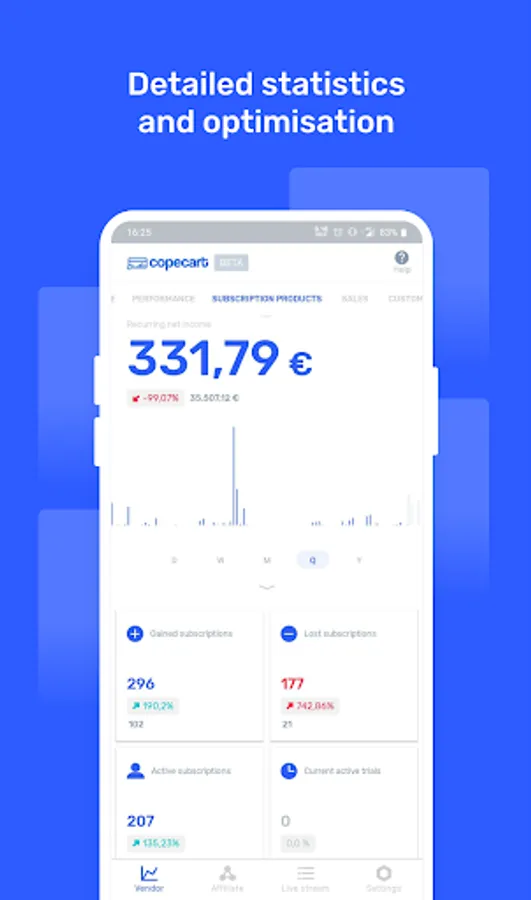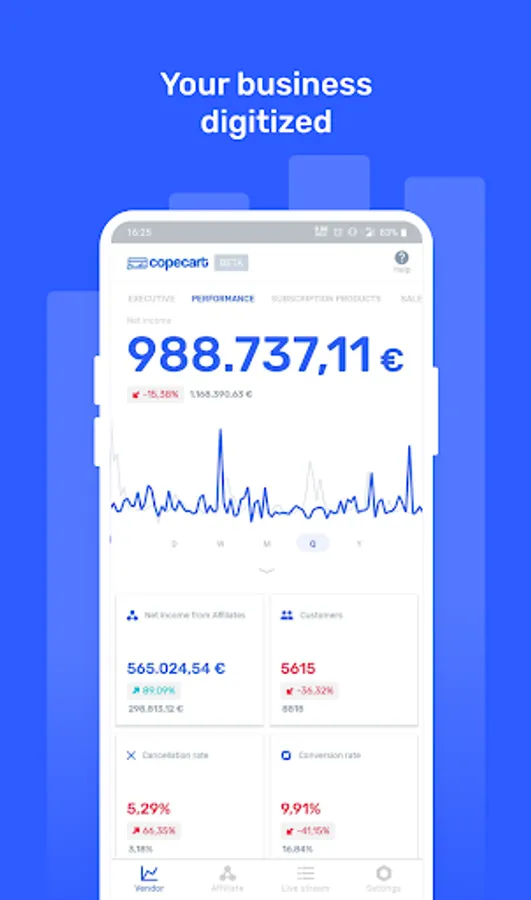 CopeCart plays an important and essential role in the online business industry. We provide small and medium-sized companies with all the functionality designed to make their sales activities efficient, beneficial, and successful. With our affinity for numbers here at CopeCart, we not just help to simplify business processes and reporting algorithms, but also open a whole new overview of your company.