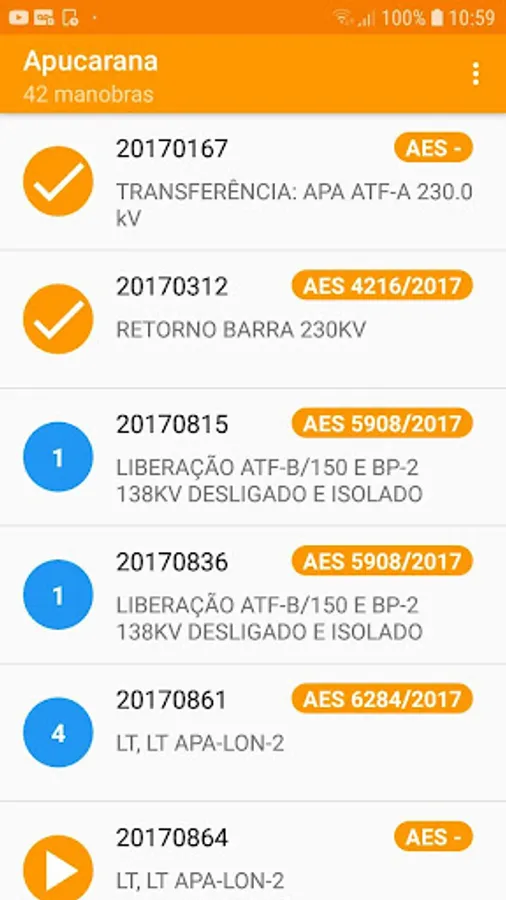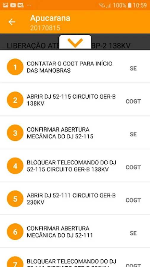 App to perform maneuvers of the sequencing of maneuvers in transmission projects of Copel Generation and Transmission ..