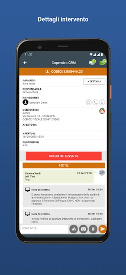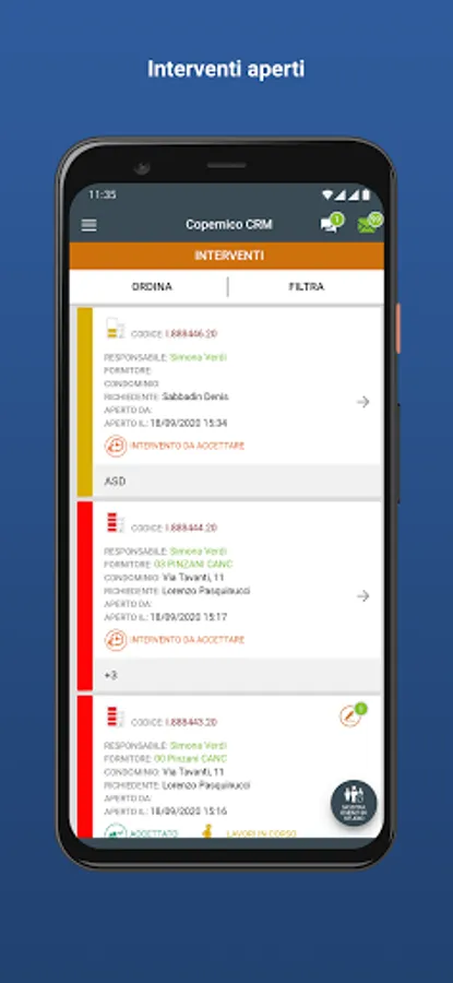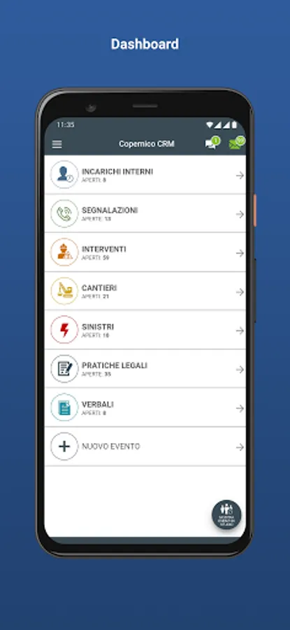Copernico CRM is a platform that uses the WEB and a convenient APP to allow interaction between the Firm, the administrator, suppliers and condominiums.