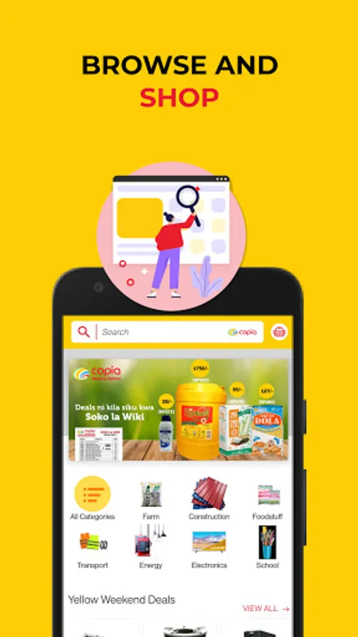 Customers visit their local shop, browse through the Copia products and place orders with the shopkeeper using the Copia app.