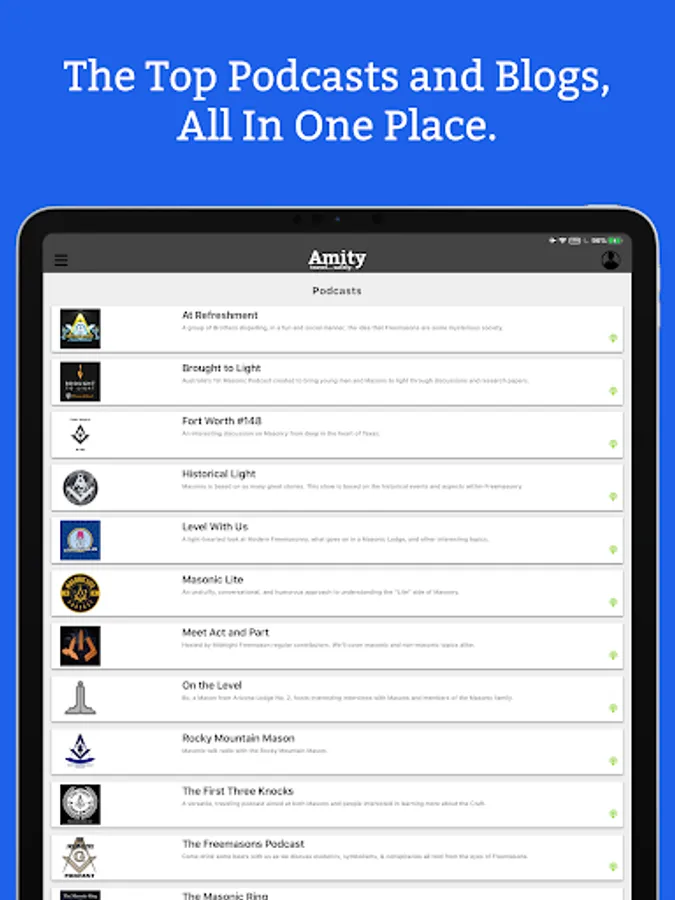 Amity v3 adds a powerful new tool: our Masonic Media Library. Browse top blogs and podcasts from around the world, hear the latest news, and more. From The Masonic Roundtable to Historical Light to Freemasons for Dummies... they're all here.