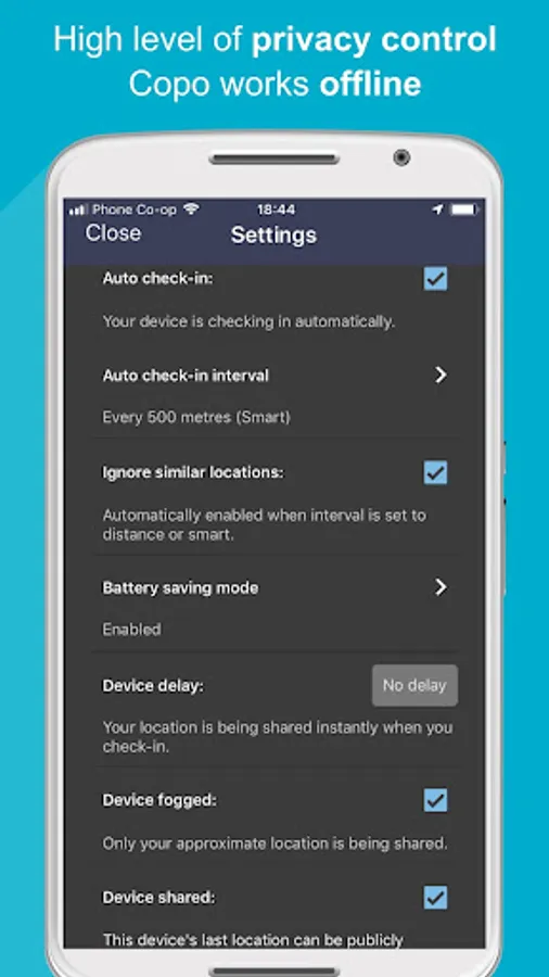This beta app accesses your device's location and stores your location data in the cloud, on your Coposition account. Your friends and external applications are then authorised, by you, to access this data. You control how these apps receive your data.