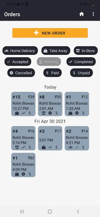 * Add new orders and manage existing ones, as good as a POS on your phone