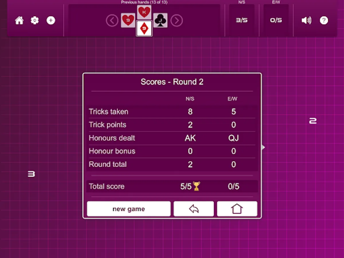 To win, you must work with your AI partner to outwit your opponents and be the first partnership to reach the win target, either five, seven or nine points.