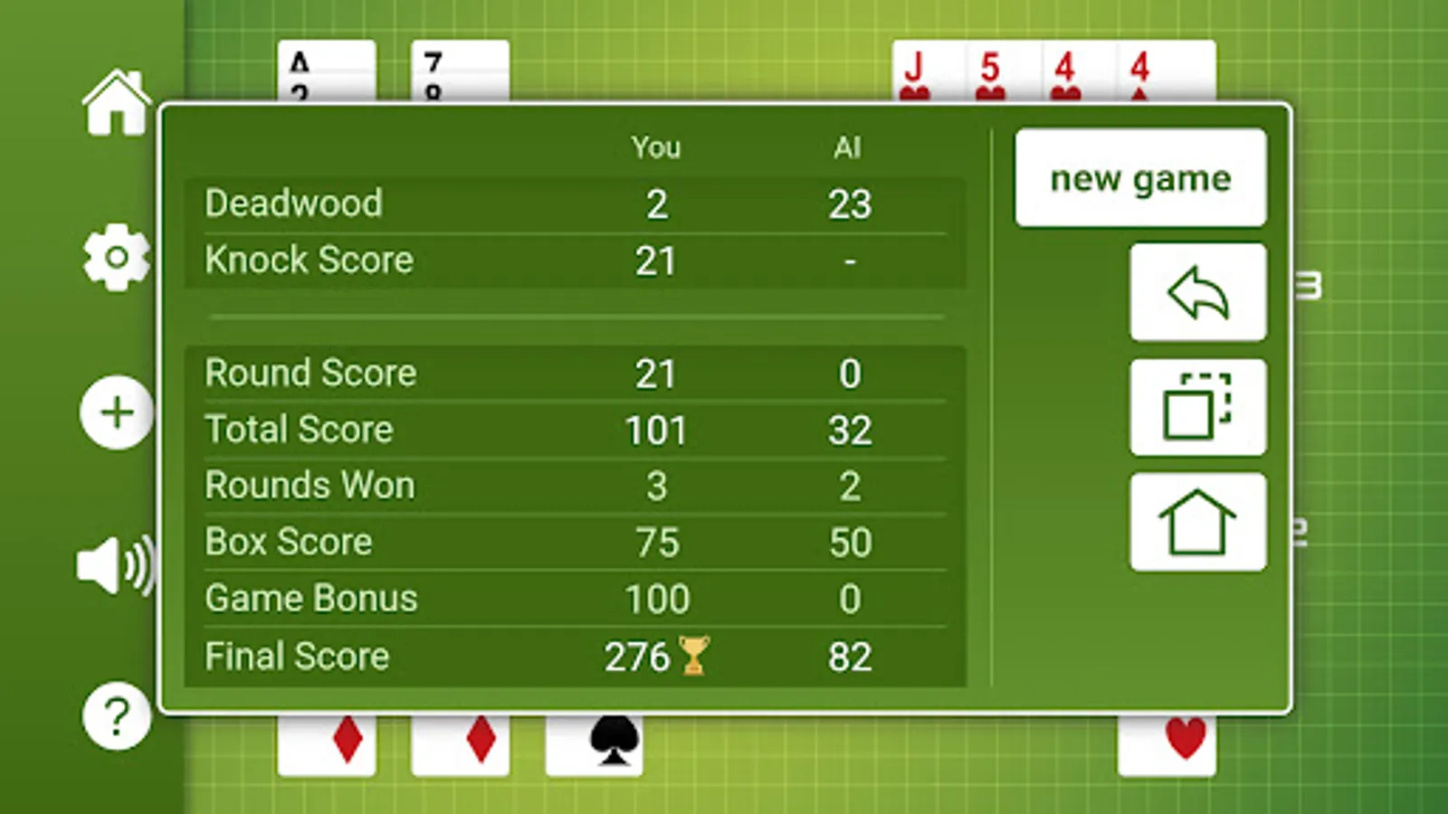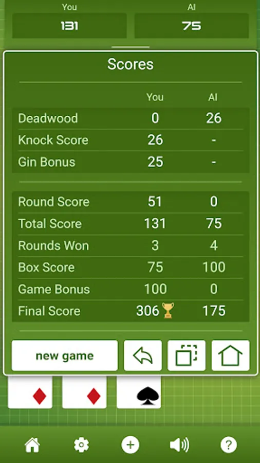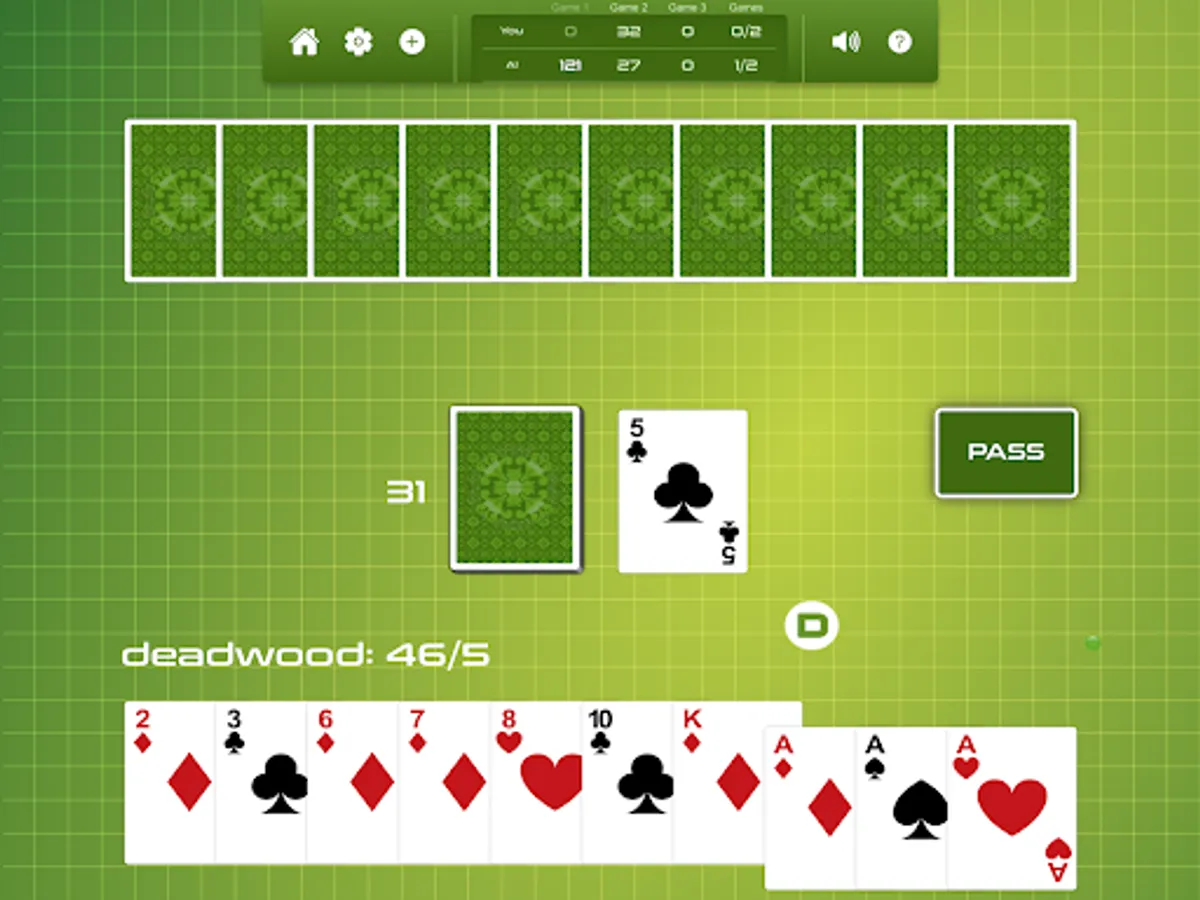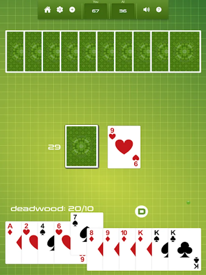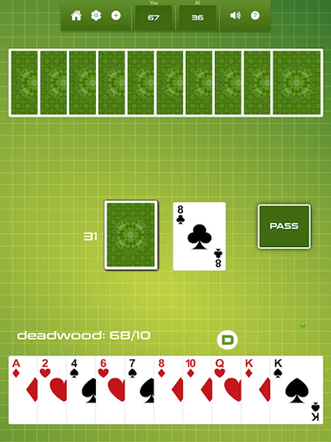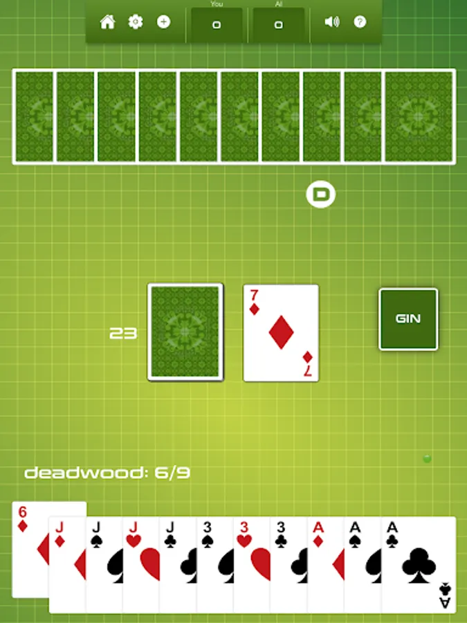 ● Choose Classic Gin, Straight Gin or the Oklahoma Gin variant, optionally adding the ‘Ace Must Be Gin’ or 'Spades Double Bonus’ rules