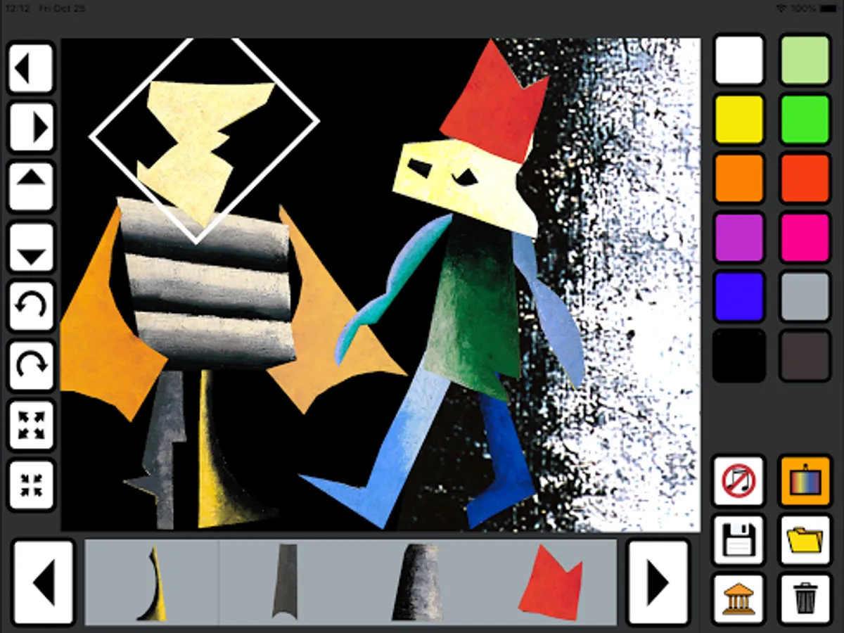 The game is like a puzzle or a collage. You can choose the pieces you want to add to your composition, move them, rotate them, change the size or their colors. There are no rules or restrictions, you can do it as you want and express your creativity.