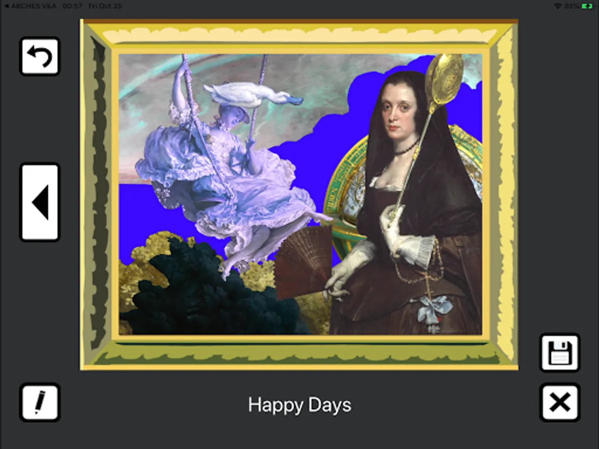 Users can interact with parts of the artworks from the Museum's collection, combining them freely on the canvas, rearranging and recoloring them. They can save their creations in their personal in-game Gallery, and also export them as pictures, to be easily shared.