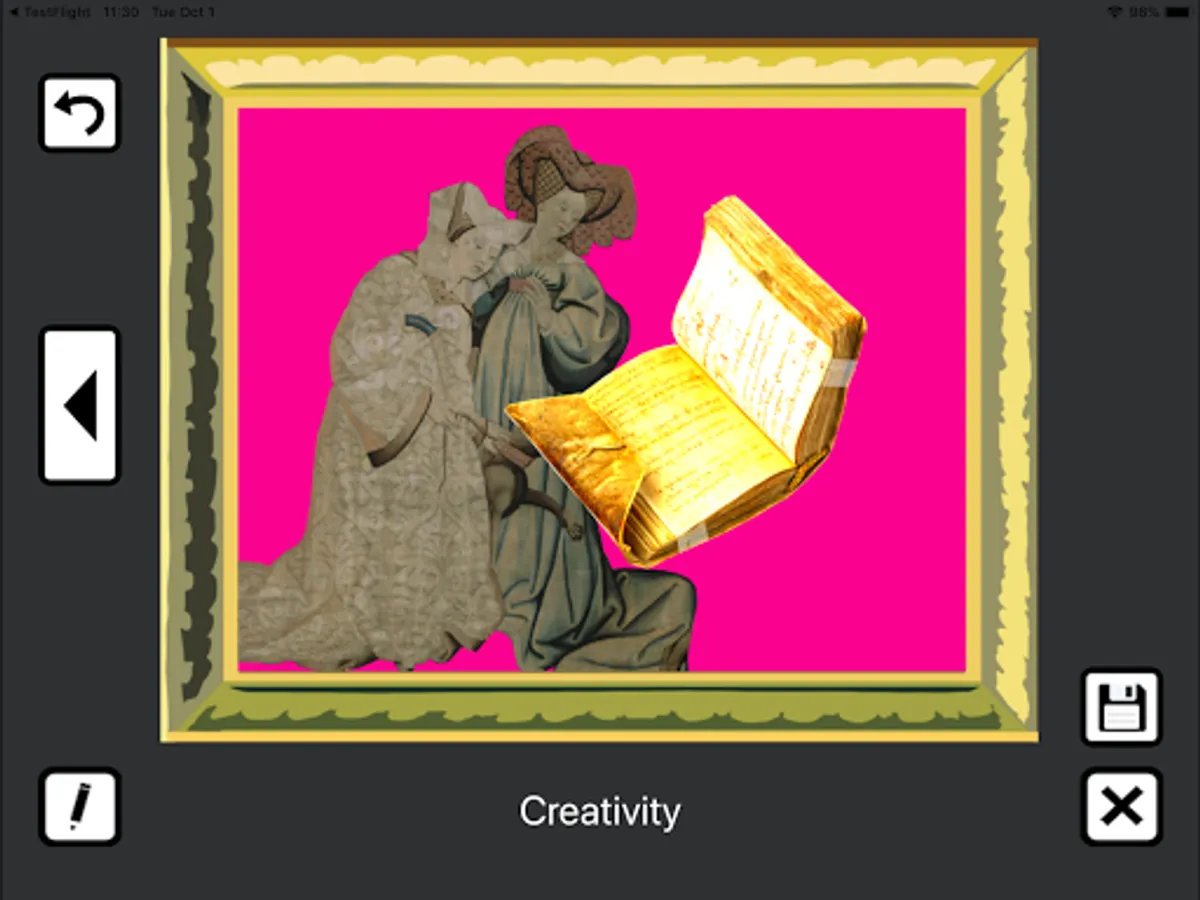 Users can interact with parts of the artworks from the Museum's collection, combining them freely on the canvas, rearranging and recoloring them. They can save their creations in their personal in-game Gallery, and also export them as pictures, to be easily shared.