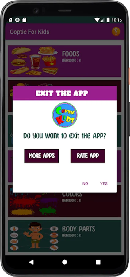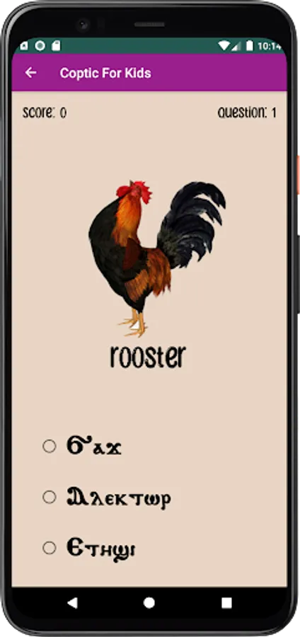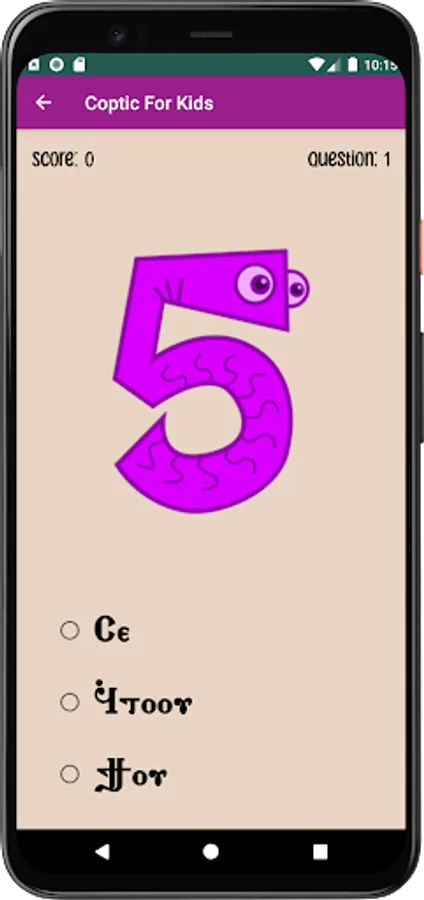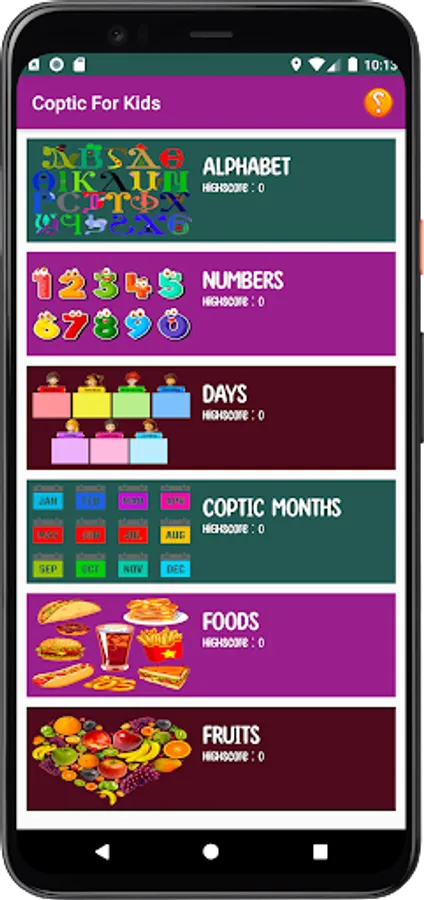 The application of teaching the Coptic language for children is an educational application that aims to teach the Coptic language to children in a fun and smooth way. The app includes interactive games and exercises to teach children letters, numbers, basic Coptic words, days, months, fruits, animals, birds, food, colors, and body parts.