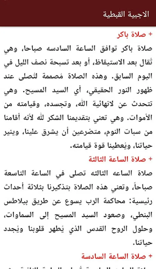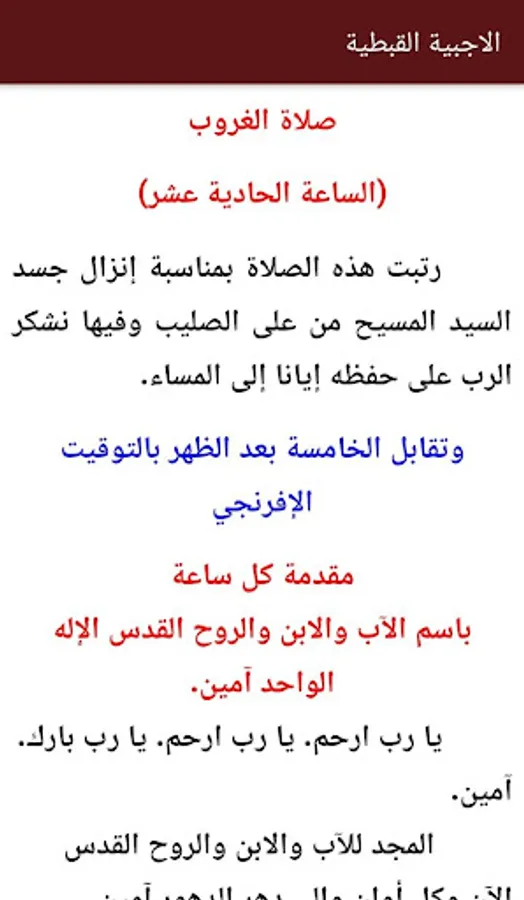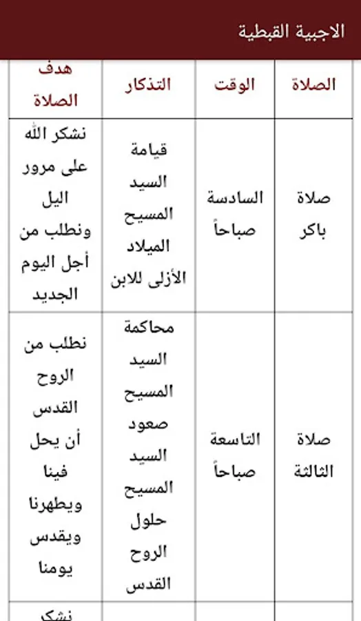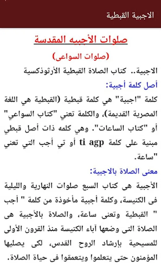 Aloajabih is primarily used by the Coptic Orthodox Church. It contains seven prayers recited throughout the day. It has been arranged chronologically hours of prayers, each of which the idea is a part of the life of Christ on earth. And every hour of which is composed of an introduction is initiated by: