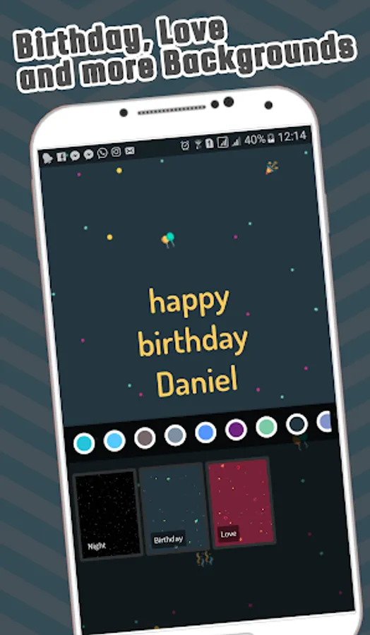 Select from numerous backgrounds such as WhatsApp color backgrounds to abstract backgrounds, love backgrounds, birthday backgrounds, Islamic backgrounds, Christian backgrounds, City backgrounds, and more.
