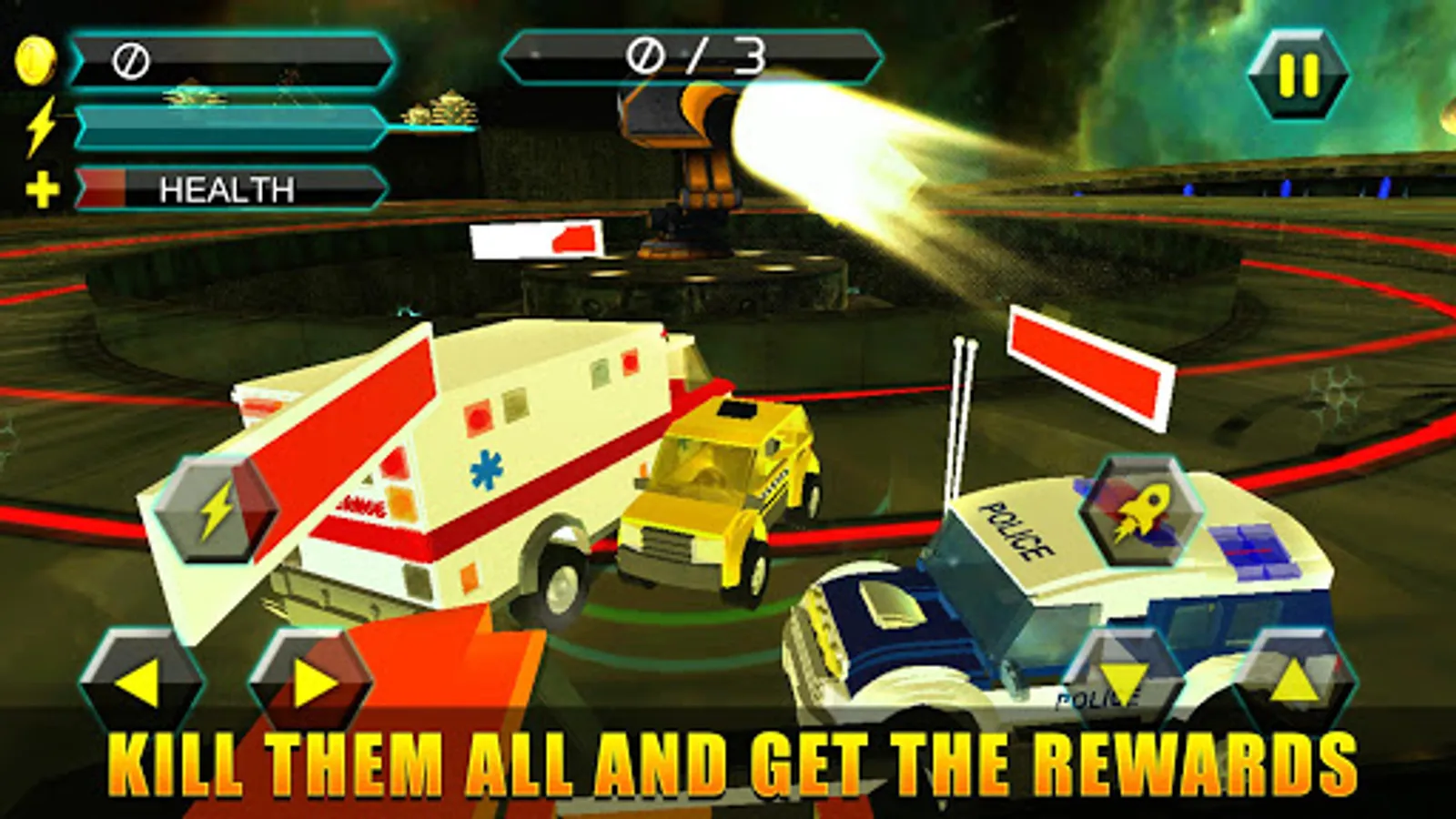 * Press the reverse to avoid falling from the arena. * Use the NOS to boost up your car’s speed.