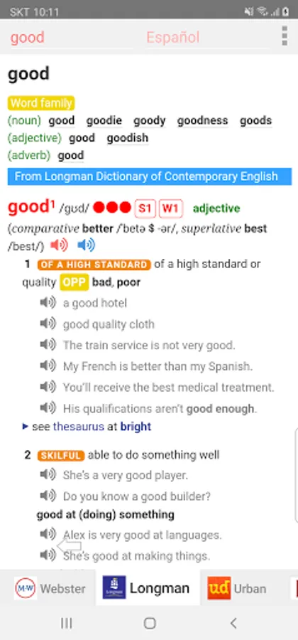 Escriba una palabra y busque en muchos diccionarios de inglés simultáneamente.