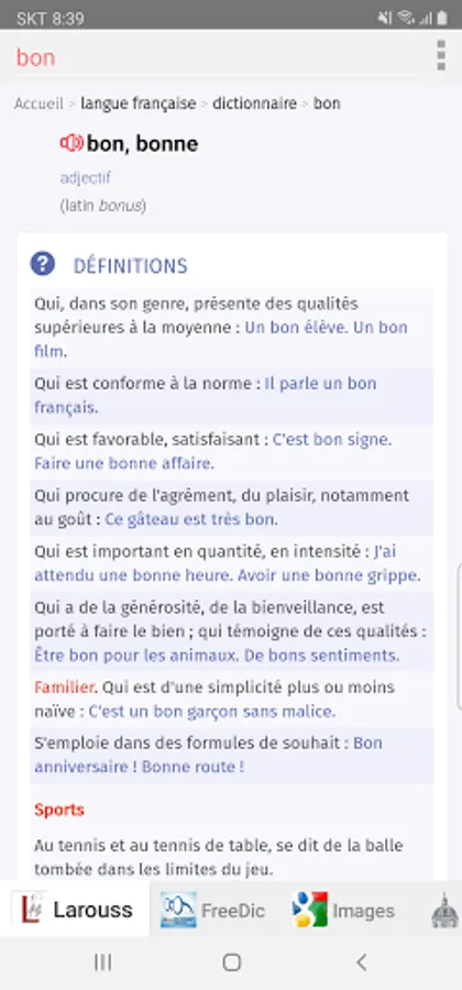 ■ Type in a word and Search All French Dictionaries simultaneously.