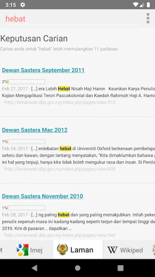 Type a word and Search All Malay Dictionaries simultaneously.