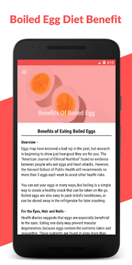 So Download Now hard Boiled Egg Diet Recipe & Plan app for loss weight fast and safely. And don't forget to give us your feedback. It's really needed for us to grow our play store rank.