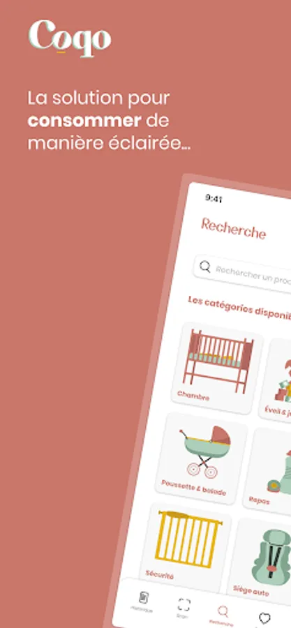Coqo makes it possible to know the origin and the health and environmental impacts of childcare products: baby bottles, pacifiers, strollers, changing mats, toys...