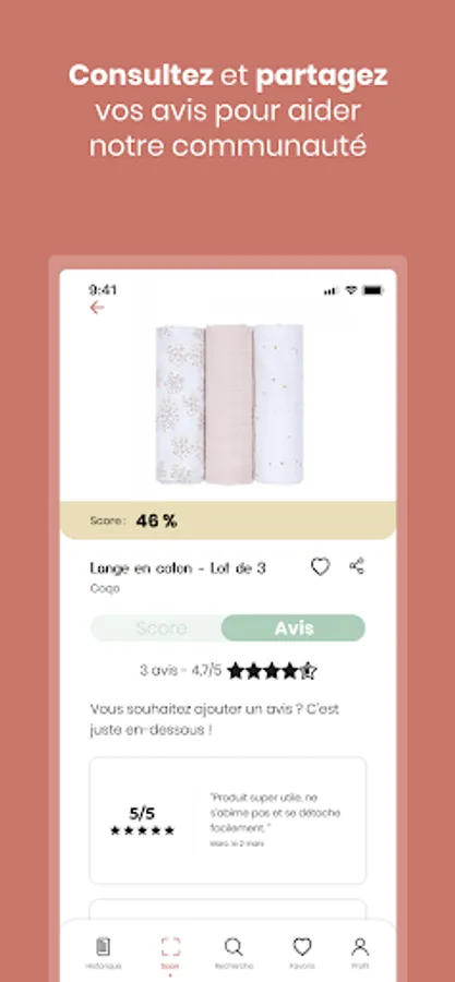 Because we know that for 93% of parents, it is crucial to have the opinion of their peers before buying a product (they consult an average of 3.5 different product review sites), the second part of the product sheet allows you to give your opinion and see those of the community.
