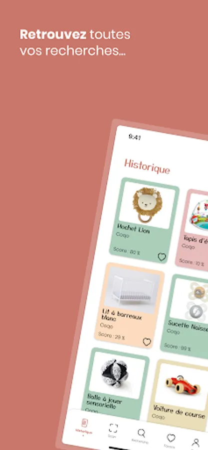 Just look for or scan any childcare product (excluding clothing and food). You will then access the overall score of the product.