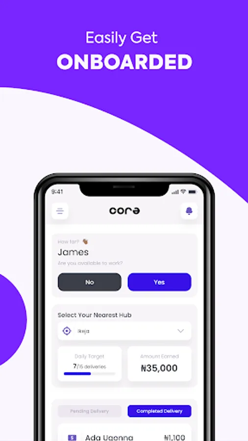Partner with Cora by simply downloading the Cora Partner app and sign-up to get on the on-boarding process.