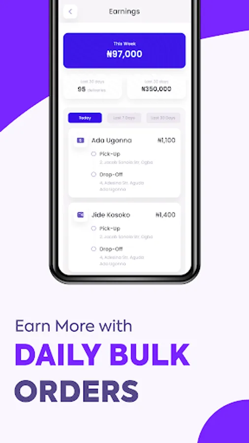 As a Cora Partner, you get bulk deliveries daily only on your specified route (mainland or island) and that way, our logistics partners earn more money on the go while fulfilling deliveries across Lagos.