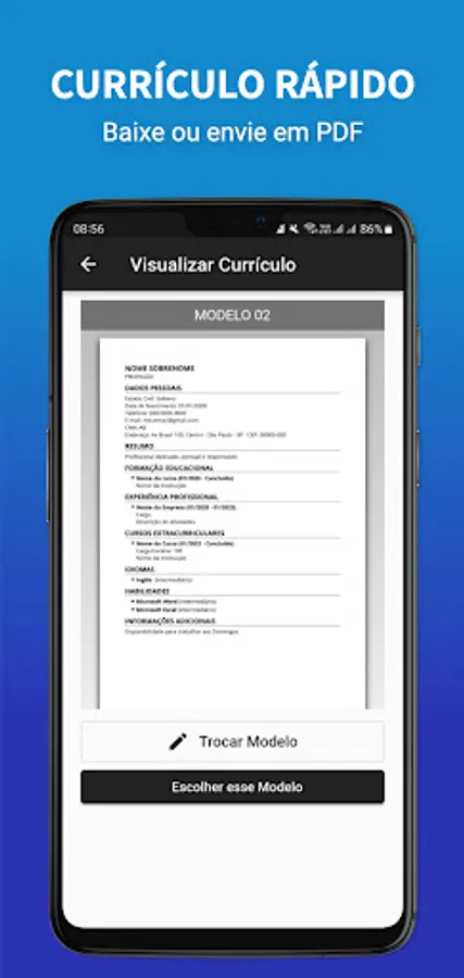 If you are looking for a new job, making a well-crafted resume is essential to stand out from other candidates. Resume Quick PDF is the ideal application for anyone who needs to make or create a Brazilian Professional Resume quickly and easily.