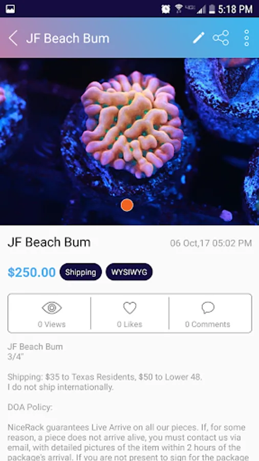Post your own collection and showcase the passion you have for sale. Browse the app and find great deals from other reefers. Follow your favorite reefers and get notifications when they post something new. Ask questions and connect for things that interest you the most. This is the only social and shopping app for local reefers!