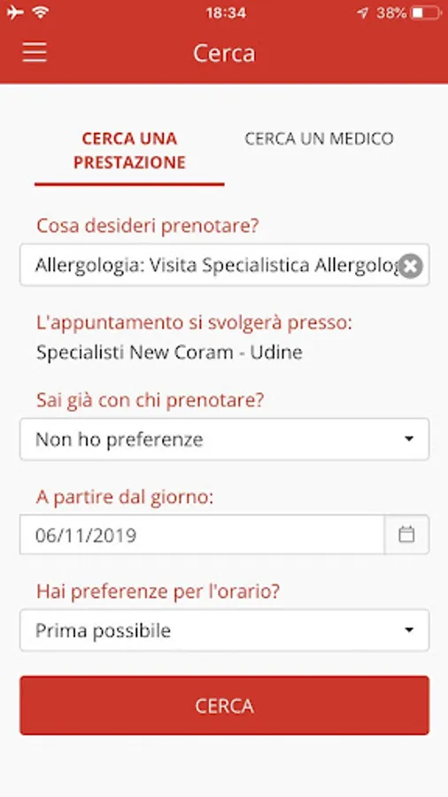 With the APP you can choose from the main menu perform or, alternatively, select the physician with which to perform the examination.