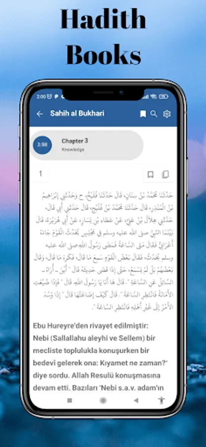 • Sahih al-Bukhari - Sahih Muslim - Sunan al-Nasa'i - Sunan Abi Dawood - Jami' al-Tirmidhi - Sunan Ibn Majah, with the possibility of translating hadiths into several languages and sharing them on social media.