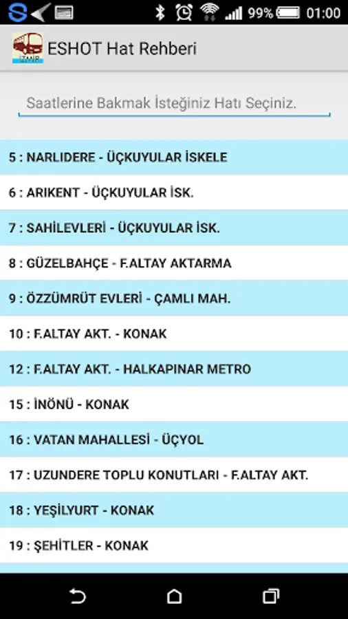 line-to-date information for Izmir Eshot the bus is a completely free and ad-free program to offer the departure times and route information.